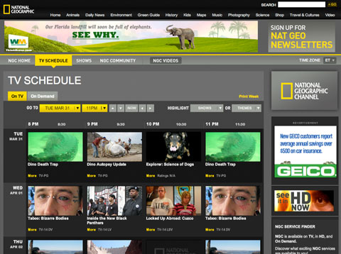 The National Geographic Channel Website has been warmly received with positive reviews from several design and interactive magazines and received a Gold Davey Award.