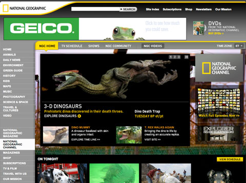 The National Geographic Channel Website has been warmly received with positive reviews from several design and interactive magazines and received a Gold Davey Award.
